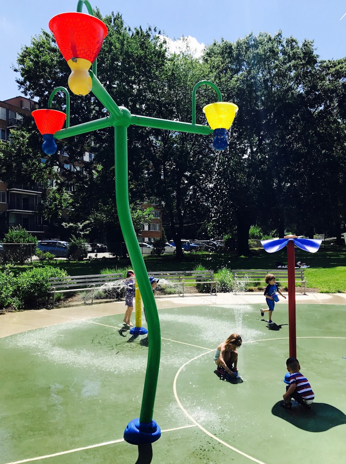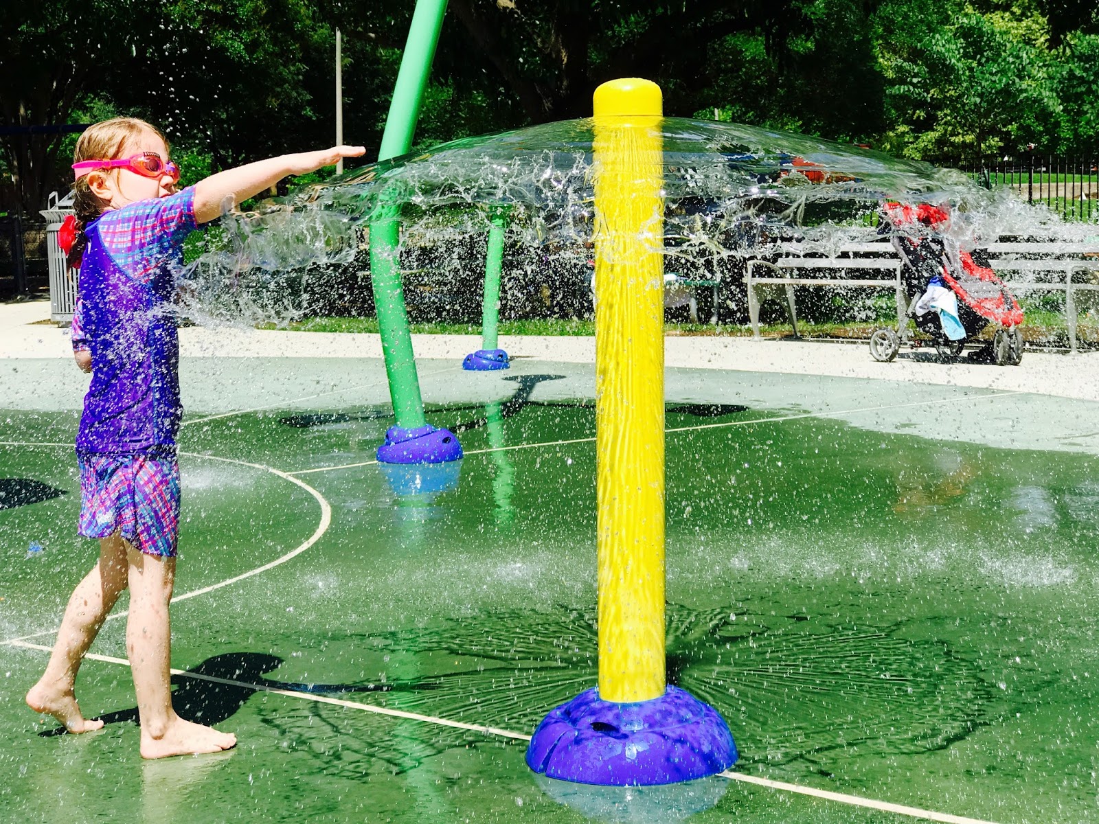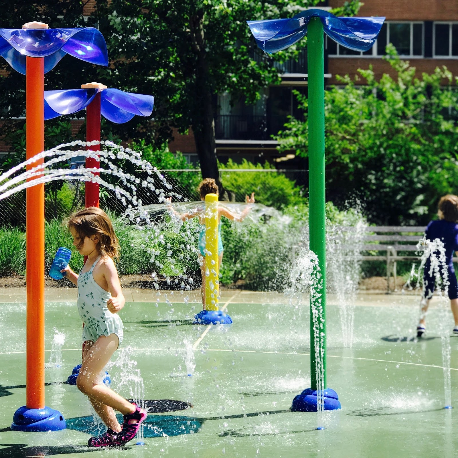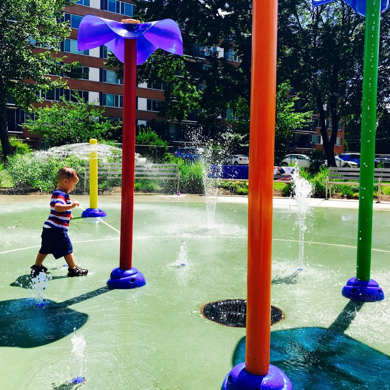 Lato za pasem, chcę Wam więc dziś pokazać jak wyglądają w Ameryce place zabaw, ale takie, które zaprojektowano z myślą o lecie i upałach. Dzieci jak wiadomo uwielbiają pluskać się w wodzie, woda jest zatem kwestią kluczową w tym pomyśle. W naszej domowej nomenklaturze nazywamy tego typu place wodnymi lub po prostu rzucamy hasło : idziemy na spryskiwacze? Nie będzie to chyba zaskoczenie, kiedy napiszę, że nasz czteroletni syn wodne place zabaw po prostu uwielbia.