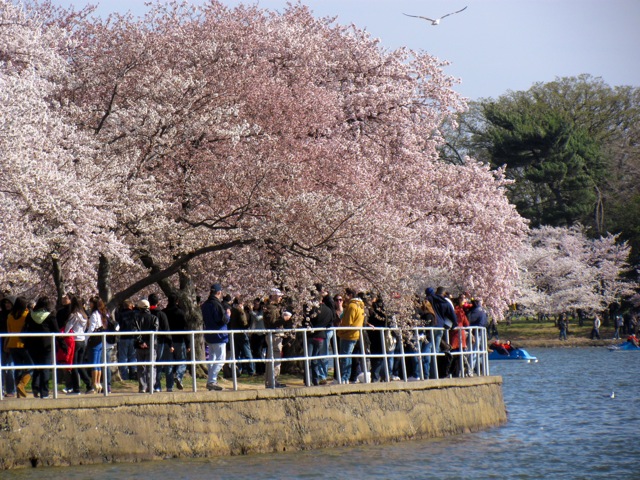 W Waszyngtonie rozpoczął się Cherry Blossom Festival czyli Festiwal Kwitnącej Wiśni. Równo sto lat temu władze Tokio na znak przyjaźni, pokoju i wszystkiego dobrego przekazały amerykańskiej stolicy ponad trzy tysiące wiśniowych drzew. Posadzono je przy Tidal Basin czyli takim zbiorniku (ja to nazywam sztucznym jeziorem) przy rzece Potomac. W latach 60-tych XX wieku Japończycy sprezentowali amerykańskiej stolicy kolejne prawie cztery tysiące drzew. W ten sposób Waszyngton stał się więc miastem kwitnącej wiśni.