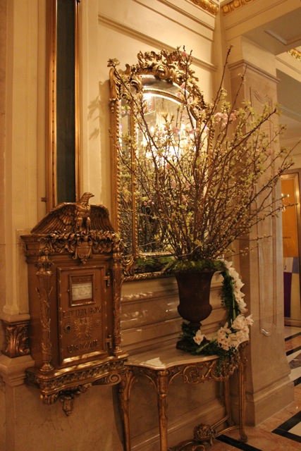 Hotel St. Regis zalicza się do jednego z najbardziej luksusowych i najstarszych na Manhattanie. Cena w apartamencie prezydenckim wynosi ponoć 30 tysięcy dolarów za dobę. Piszę ponoć, bo opieram się na tym, co wyczytałam jakiś czas temu, w którejś z amerykańskich gazet. Będąc ostatnio w Nowym Jorku Pan X i ja odważyliśmy się wejść do tego hotelu. Nie byliśmy chyba pierwszymi ludźmi, którzy wpadli na taki pomysł, ponieważ pani w recepcji ani nas nie wyprosiła, ani nie protestowała, gdy zaczęliśmy robić zdjęcia w holu.