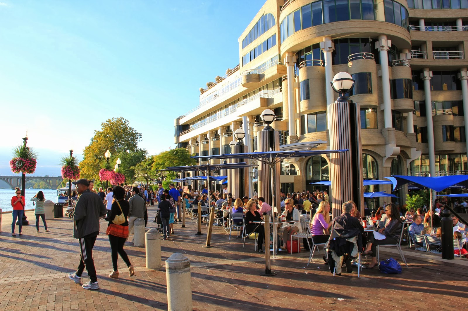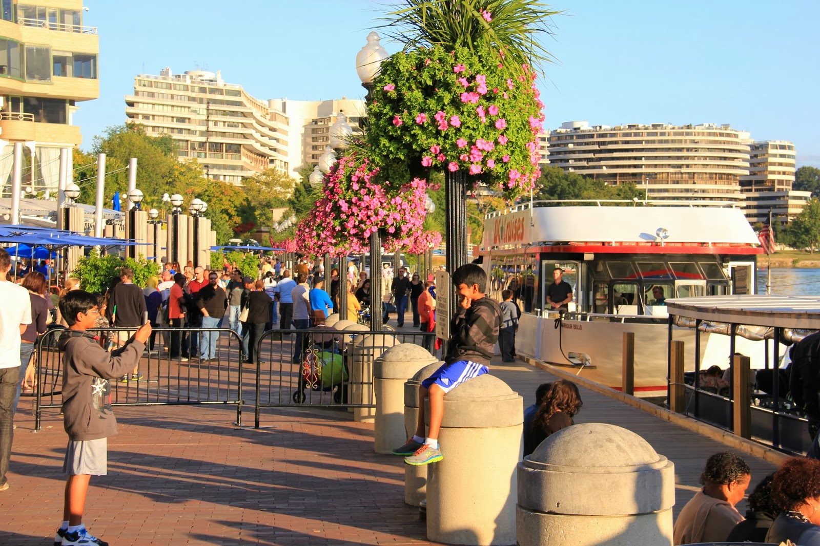 Zobaczcie jak wygląda sobotnie popołudnie nad Potomakiem w Waszyngtonie przy Georgetown Waterfront. Zapewne są w Polsce miasta, gdzie przestrzeń nad wodą zorganizowano w podobny sposób. Marzy mi się coś takiego w moim rodzinnym Szczecinie.