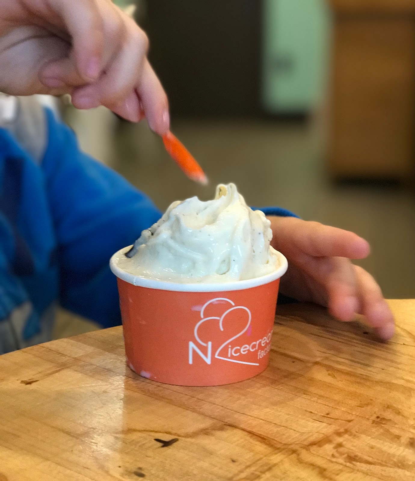 Lodziarnia, o której piszę nazywa się Nicecream Factory. To jeden z przykładów małego biznesu założonego przez dwie bardzo młode kobiety. Niewielkie pomieszczenie z kilkoma stolikami i rzędem białych mikserów. Nic wielkiego. Ale ludzie tu przychodzą i wracają, w weekendy jest niemal zawsze kolejka. Ostatnio byliśmy tam z Panem X i naszym 4-letnim synem, który jak zwykle chciał czekoladowe. Niestety klasycznych czekoladowych nie było, bo smaki zmieniają się co kilka dni. Myślę, że to taka biznesowa strategia, kup dziś co jest a po czekoladowe wróć za kilka dni. Ja wybrałam ananasowe, były naprawdę świetne. I nie za słodkie.