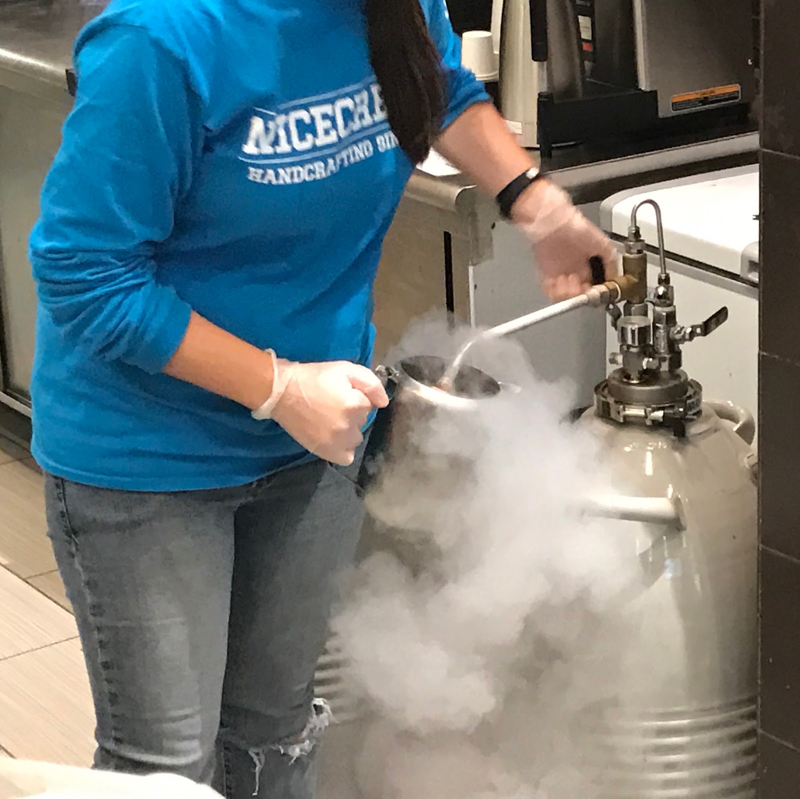 To lody, które robione są na oczach klienta zaraz po złożeniu zamówienia i mrożone w tym samym momencie przy pomocy ciekłego azotu. Odbywa się to tak : wybierasz smak, płacisz a chwilę później dziewczyna umieszcza w misce miksera KitchenAid potrzebne składniki. Moment później widzisz jak nad kręcącymi mieszadłami miksera unosi się charakterystyczna para pojawiająca się wtedy, gdy temperatura gwałtownie spada. Raz, dwa, trzy i lody gotowe.